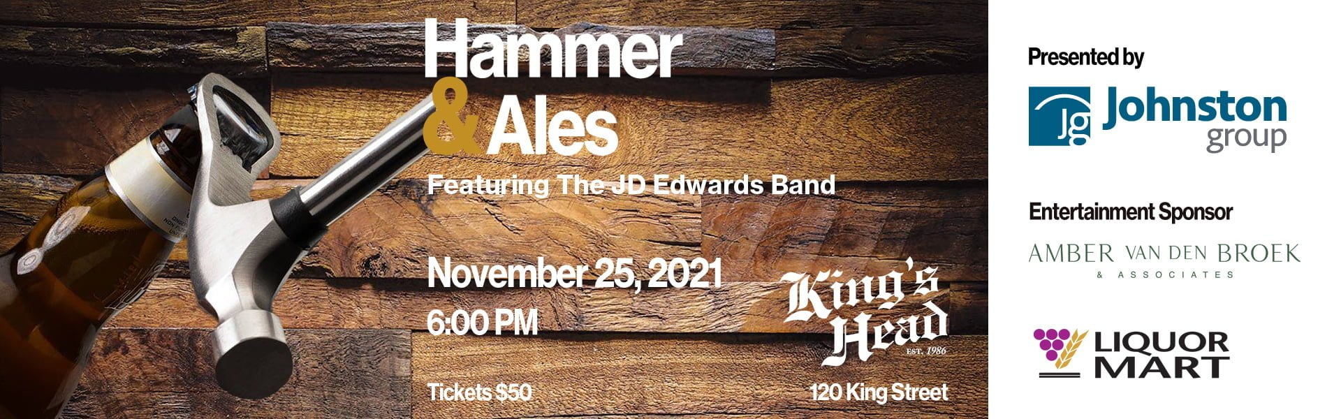 Hammer & Ales, will be held at the King’s Head Pub; Chris Graves and his team are incredible Habitat partners and we can’t wait to “Raise the Roof’ as we take over the second floor! You will enjoy their famous fish and chips, maybe a bit of curry and for your sweet tooth, yes, the famous bread pudding is a must. We will close out the night with the JD Edwards Band and dance the night away! Yes! You can dance!