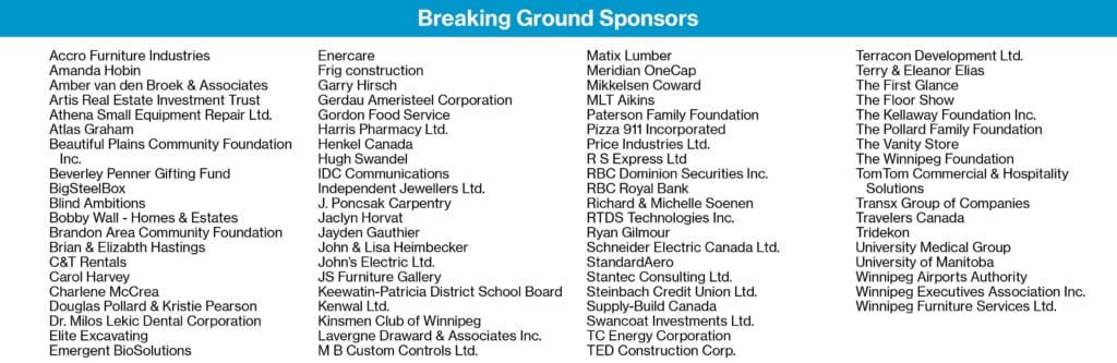 A very special thank you to the following fundraising committees and the generous donors and sponsors who support the following programs and events that are integral to the work that Habitat for Humanity Manitoba does in the community: The Women Build Program, and our cycling fundraising events: Ride Around the Lake and Cycle of Hope.
