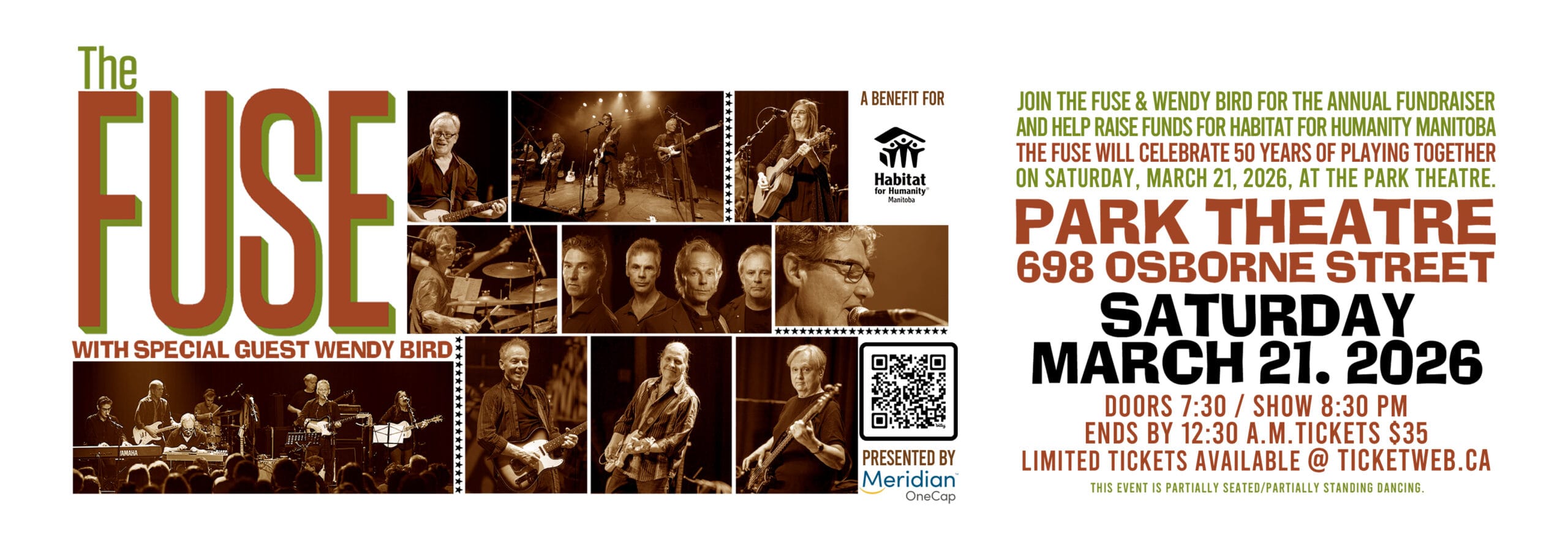 Winnipeg, MB — Local rock legends The Fuse are marking an incredible 50 years of music with another benefit concert in support of Habitat for Humanity Manitoba (Habitat Manitoba) on Saturday, March 21, 2026, at The Park Theatre, located at 698 Osborne Street. Doors open at 7:30 p.m., with the show starting at 8:30 p.m.
